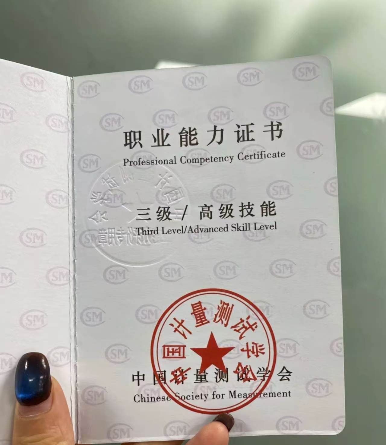 证书采用全国统一制式,版面规范,清晰载明持证人姓名、报考工种、证书等级、考试成绩、证书编号,并加盖中国计量测试学会官方公章,资质正规可查。